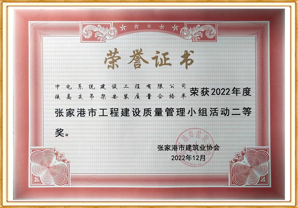 张家港市工程建设质量管理小组二等奖
