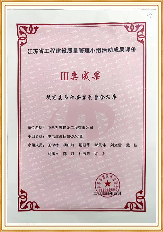 江苏省工程建设质量管理小组三类成果