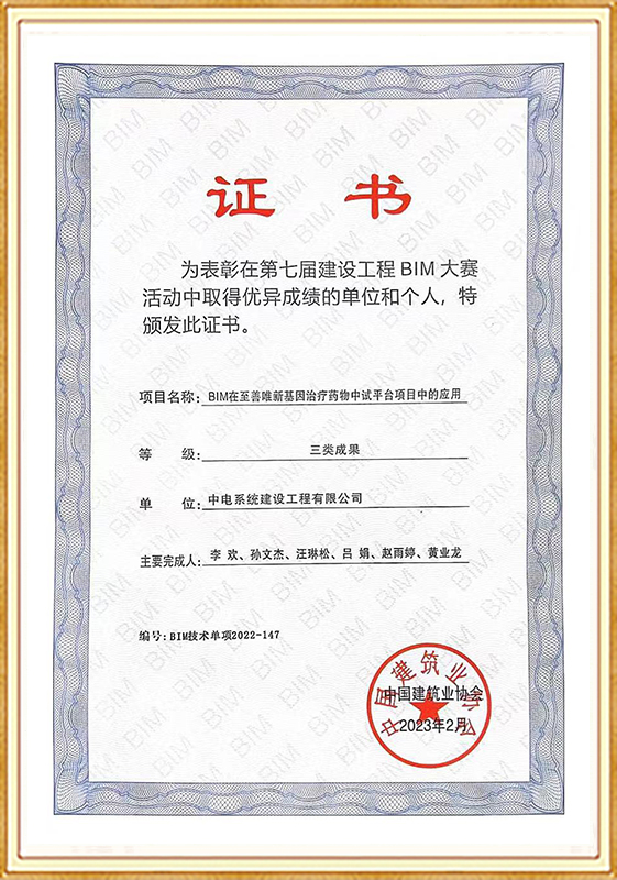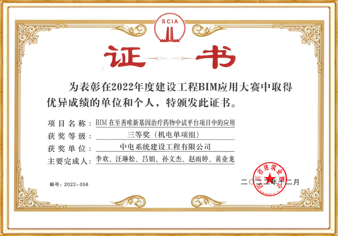 2022年度四川省建设工程BIM应用大赛三等奖